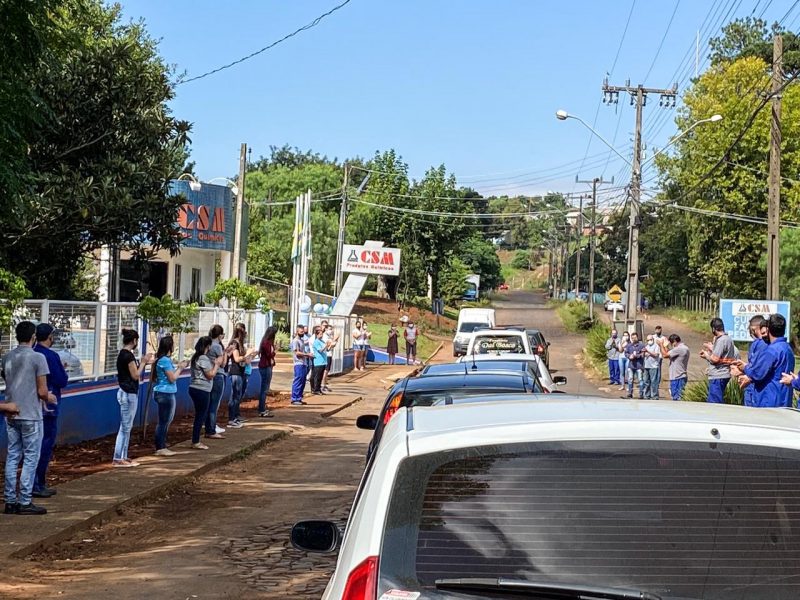 Já no Bormann, às 10h20, o cortejo passou em frente a empresa onde Daniel trabalhava. Lá, amigos e colegas prestaram homenagens ao companheiro. Emocionados, eles aplaudiram e fizeram alguns minutos de silêncio. Logo o carro funerário seguiu em direção ao cemitério. – Foto: Willian Ricardo/ND - 6 de 10