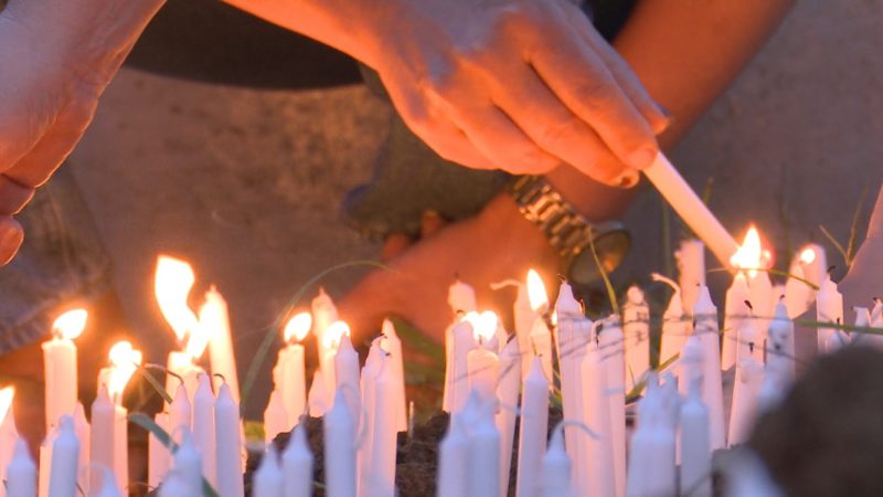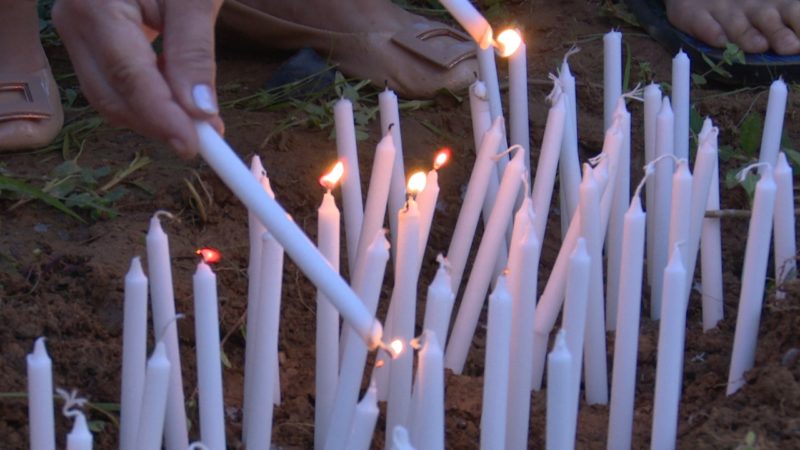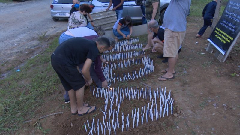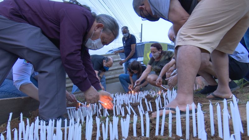No bairro Paranaguamirim, na zona Sul da cidade, integrantes de movimentos sociais e religiosos acenderam 600 velas, que representam as 600 mil pessoas que perderam a vida pela Covid-19 em todo o Brasil.