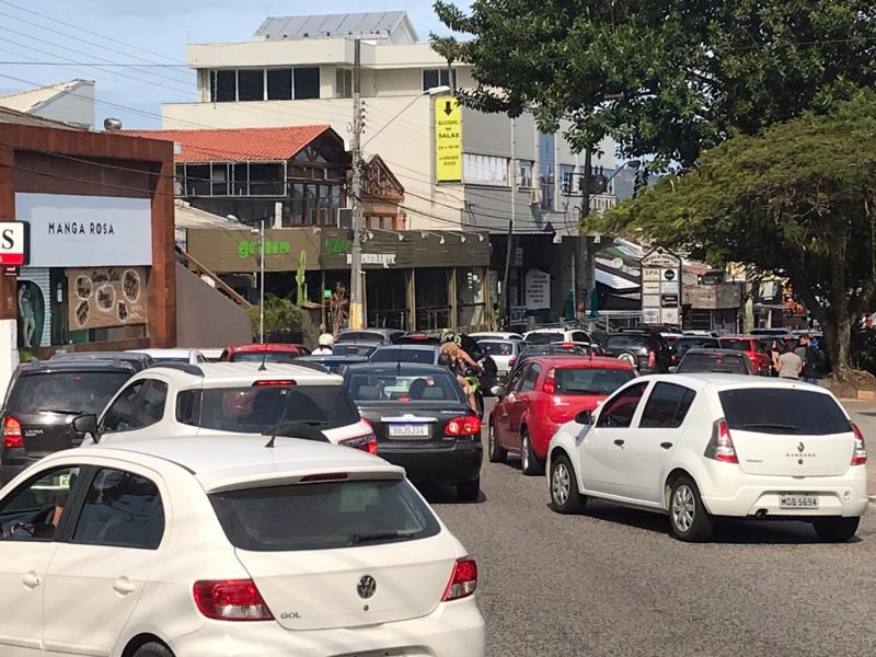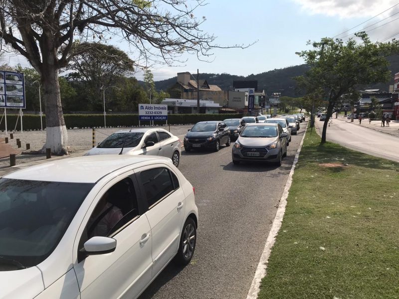 Avenida Luiz Boiteux Piazza, que liga as praias do Norte, na Cachoeira do Bom Jesus; domingo de intenso movimento em ambos os sentidos – Foto: Anderson Coelho/ND - 7 de 11