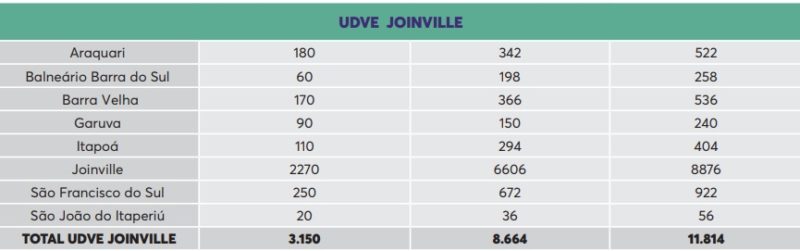 Das 11.814 doses que a Regional recebeu, a cidade de Joinville ficou com 2.270 doses da Sinovac/Butantan e 6.606 da Pfizer/Comirnaty, totalizando 8.876 doses.