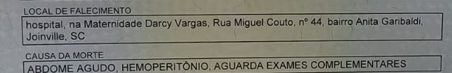 “A Maternidade Darcy Vargas, de Joinville, está apurando internamente o fato ocorrido e aguarda o laudo do Serviço de Verificação de Óbito (SVO).A família foi acolhida pelo Serviço Social de unidade e está recebendo todo o atendimento necessário. Essa situação é um caso atípico, pois o último óbito de parturiente ocorrido na maternidade foi no ano de 2017.”