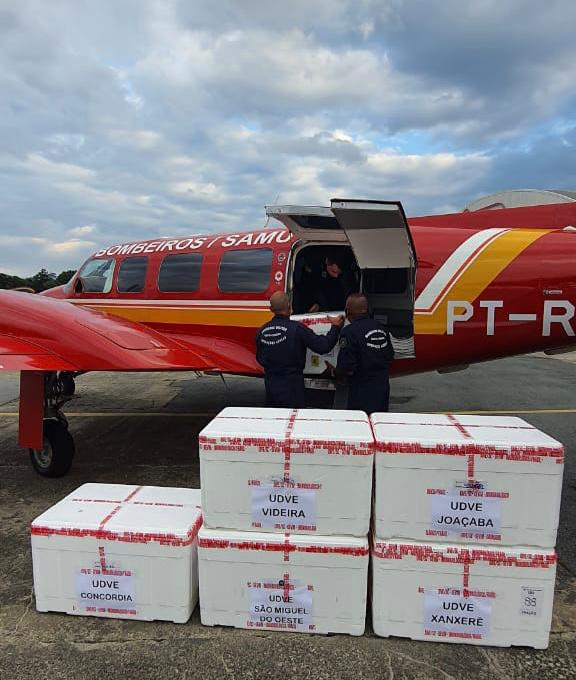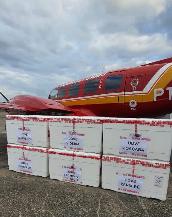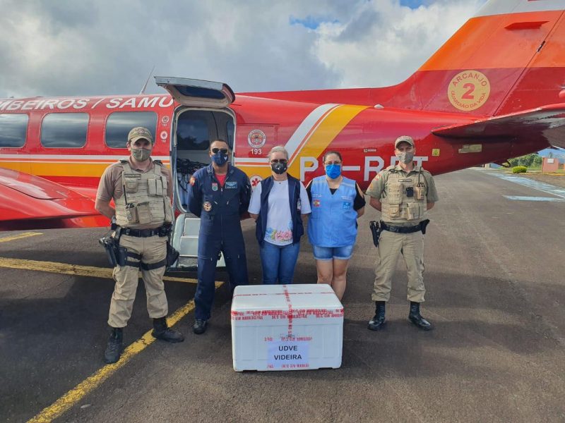 Novas doses da vacina contra a Covid-19 chegam ao Oeste de Santa Catarina na manhã desta quinta-feira (18). A distribuição nos municípios de Videira, Joaçaba, Concórdia, Xanxerê, Chapecó e São Miguel do Oeste será feita pela aeronave Arcanjo 02.