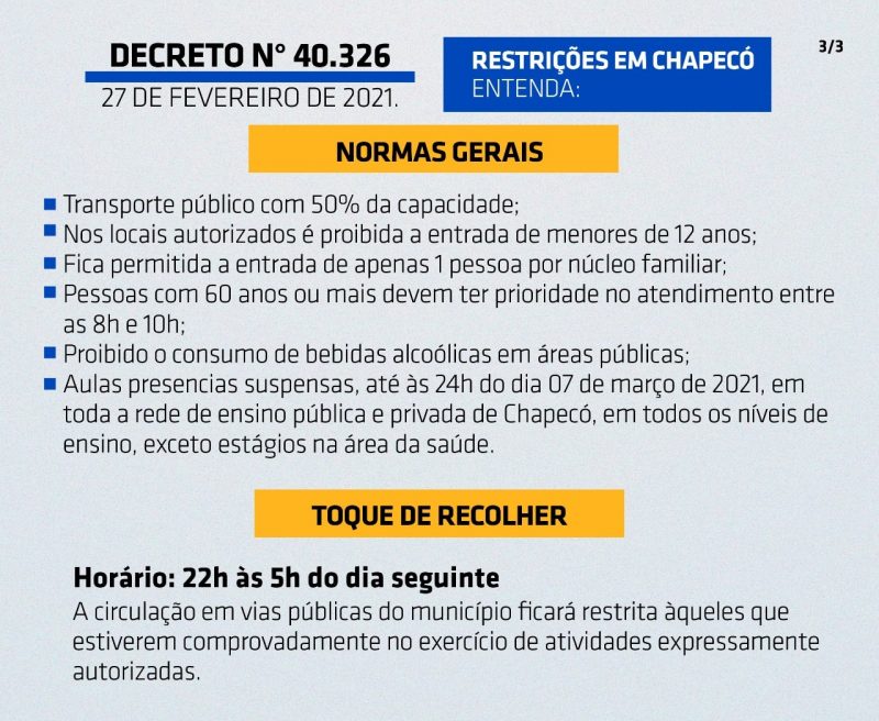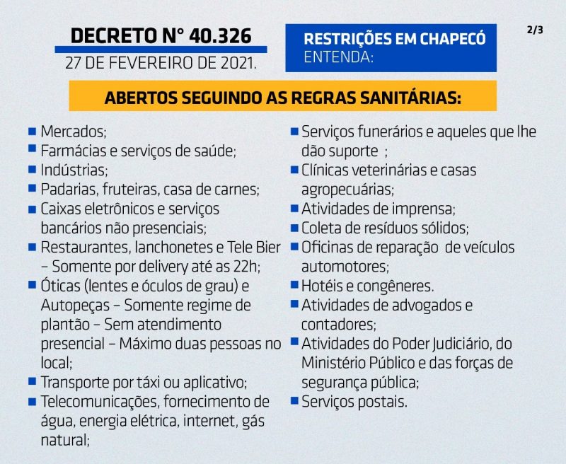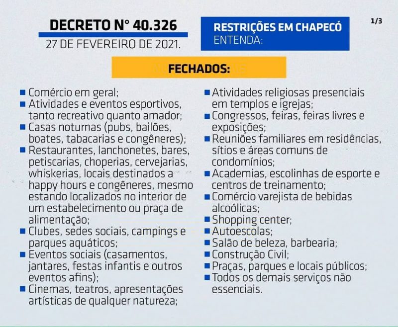 O decreto 40.326 foi publicado no sábado, mas não tem muitas alterações em relação ao que já vinha sendo praticado durante a semana, com os decretos municipais 40.303 e 40.306, e em relação ao decreto estadual 1.172 publicado ontem pelo Governo do Estado.