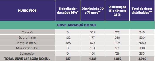 As vacinas das centrais de Jaraguá do Sul e Mafra serão retiradas pela central de Joinville e de Araranguá e Tubarão pela Central de Criciúma. Todos os veículos serão escoltados pela Polícia Militar.