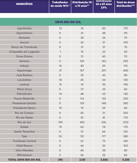 Às 15h30, o veículo da Dive sai com as doses da vacina para a central regional de Rio do Sul. A partir das 16h, as centrais regionais de Joinville, Grande Florianópolis, Criciúma, Blumenau e Itajaí fazem a retirada das doses na própria Central Estadual de Rede de Frio.