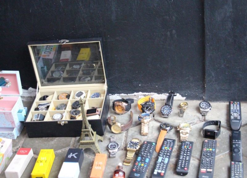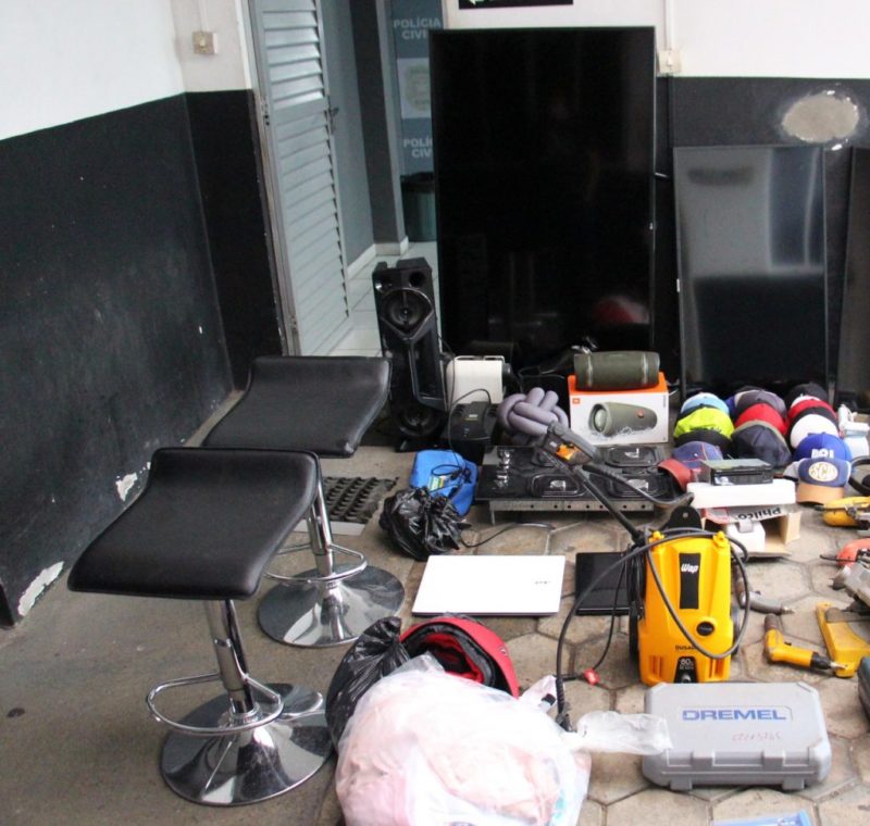 Os itens foram encaminhados à delegacia e as pessoas que foram furtadas estão sendo orientadas a procurar o local para identificar seus objetos.