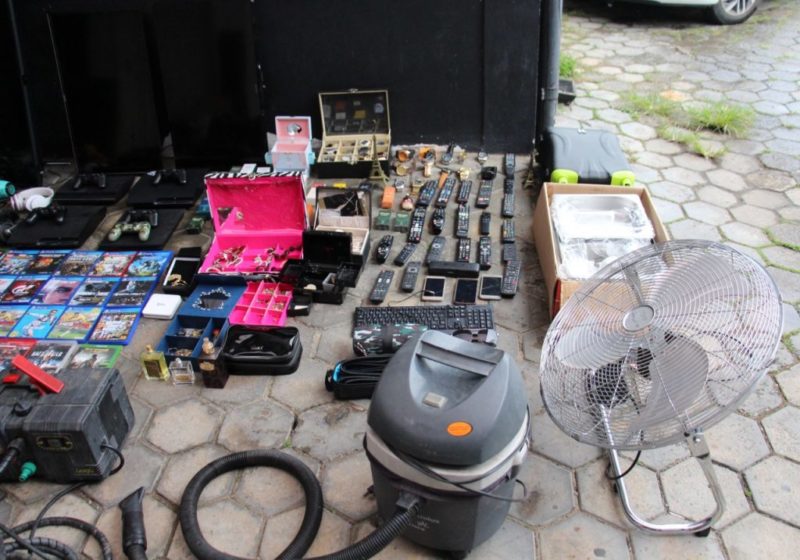 Bonés, furadeira, controles remotos, secadores de cabelo e até um cachorro: tudo isso e muitos outros itens foram recuperados em Jaraguá do Sul, no Norte de Santa Catarina, após a prisão de um casal suspeito de realizar diversos furtos na cidade.