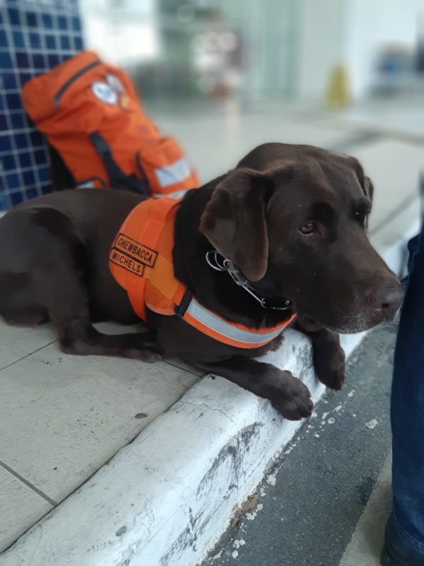 Chewbacca nasceu em 2015 e, com seis anos de idade, tem uma longa experiência em situações como essa. Junto ao major Michels, que cuida dele desde que nasceu, o cão atuou também nas operações de Brumadinho, 2019, e em Petrópolis, em março deste ano.