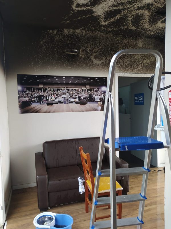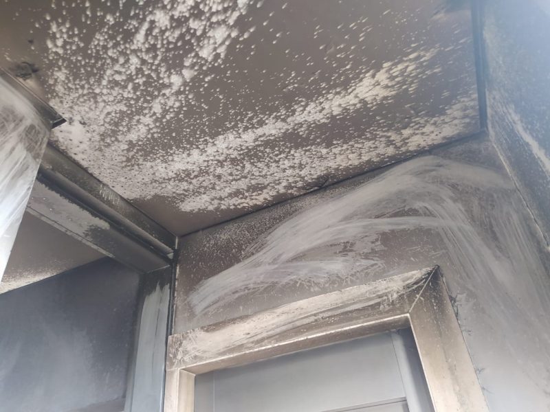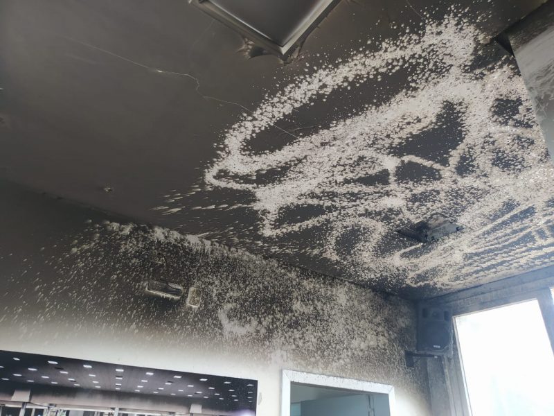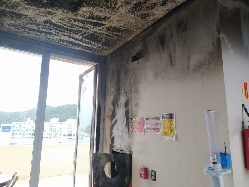 Dois funcionários estavam presentes no local. Como eles são filipinos, no entanto, a comunicação com os bombeiros foi difícil. Segundo os agentes, o incêndio se limitou à área comum da empresa, sem se alastrar por outros cômodos – Foto: CBMSC/Divulgação/ND - 4 de 4