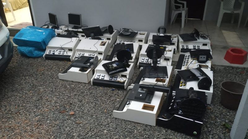 Quando a guarnição entrou, descobriu 27 máquinas funcionando, além de duas CPUs reserva. Dois homens, de 54 e 66 anos, estavam jogando e afirmaram que visitavam o local com frequência.
