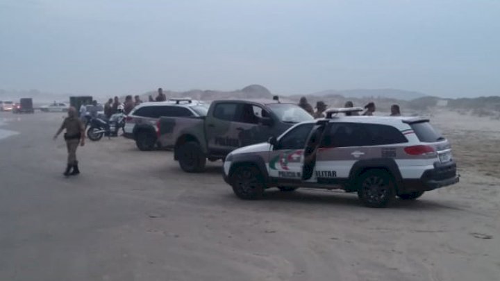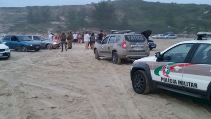 Uma grande aglomeração foi flagrada na praia do Gi, em Laguna, neste domingo (15). A operação foi realizada pela Polícia Militar e Polícia Militar Ambiental nas praias do município do Sul de Santa Catarina – Foto: Divulgação/PMSC/ND - 2 de 3
