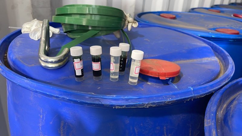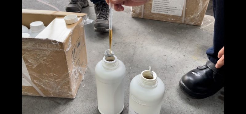 Na primeira apreensão, o herbicida Paraquat estava acondicionado em tonéis. Os tonéis próximos à porta realmente continham sulfato de alumínio, mas os demais continham a carga de agrotóxicos ilegais, em uma evidente tentativa de driblar a fiscalização.
