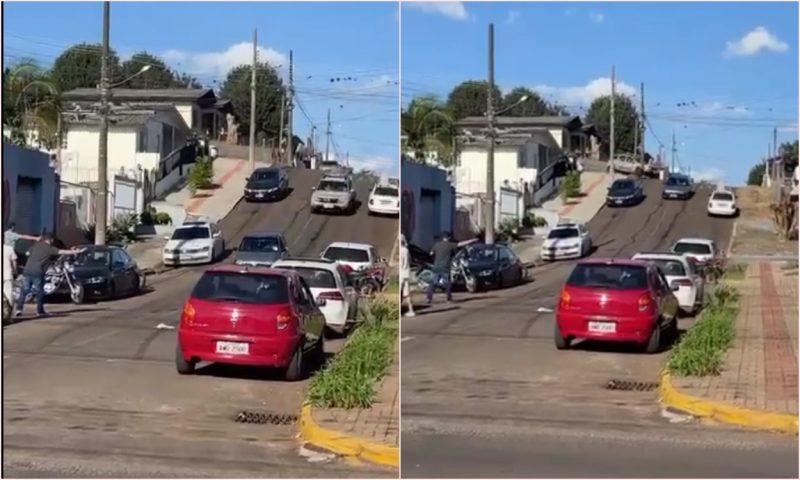 Uma perseguição policial em Chapecó/SC resultou em momentos de tensão e confronto na tarde do último sábado (22). Tudo começou quando uma equipe de policiais de motopatrulhamento estava realizando rondas no bairro São Cristóvão e se deparou com um homem conduzindo um veículo Corsa, realizando manobras perigosas conhecidas como “Borrachão”, na rua Cristo Rei, próxima à esquina com a rua Osvaldo Cruz. – Foto: Reprodução/Internet/ND - 2 de 8