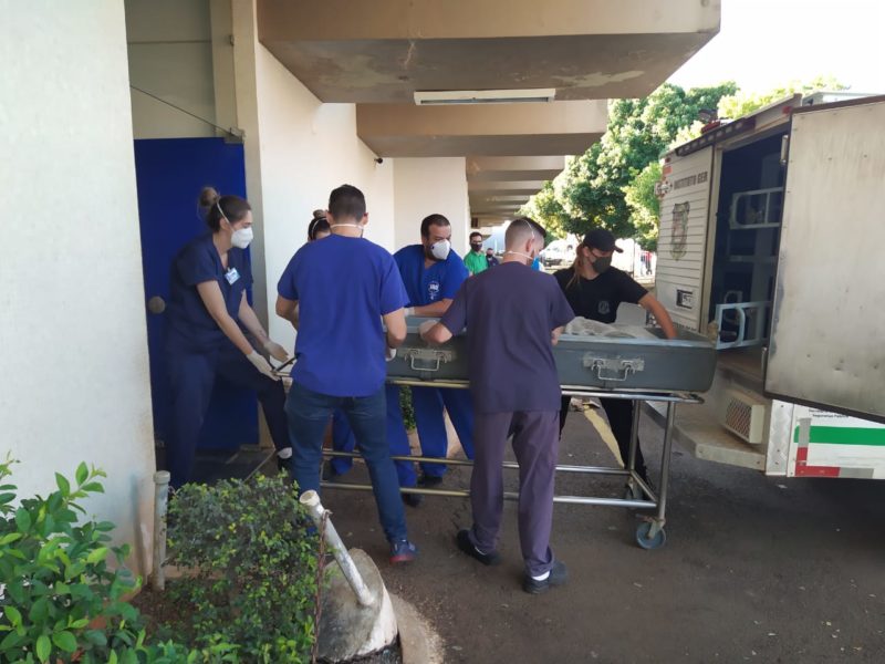 Os caixões com os corpos das cinco vítimas do ataque a creche Pró-Infância Aquarela, na cidade de Saudades, no Oeste de Santa Catarina, chegaram ao Hospital Regional do Oeste, em Chapecó, por volta das 16h15 desta terça-feira (4).