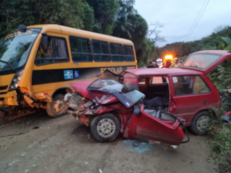 Segundo os bombeiros, o acidente aconteceu quando o ônibus voltou à pista após uma criança descer do coletivo. Nesse momento, o motorista viu o carro vindo em sua direção, derrapando pela estrada.