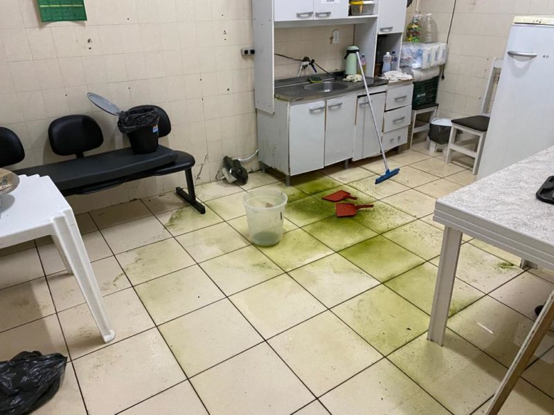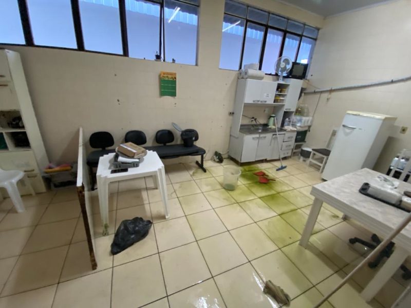 Um homem causou transtornos na manhã desta sexta-feira (25) ao quebrar itens do setor de transportes da Secretaria de Saúde de Xaxim, no Oeste de Santa Catarina. – Foto: J. Filippin/ Rádio Cultura de Xaxim/Reprodução/ND - 2 de 8