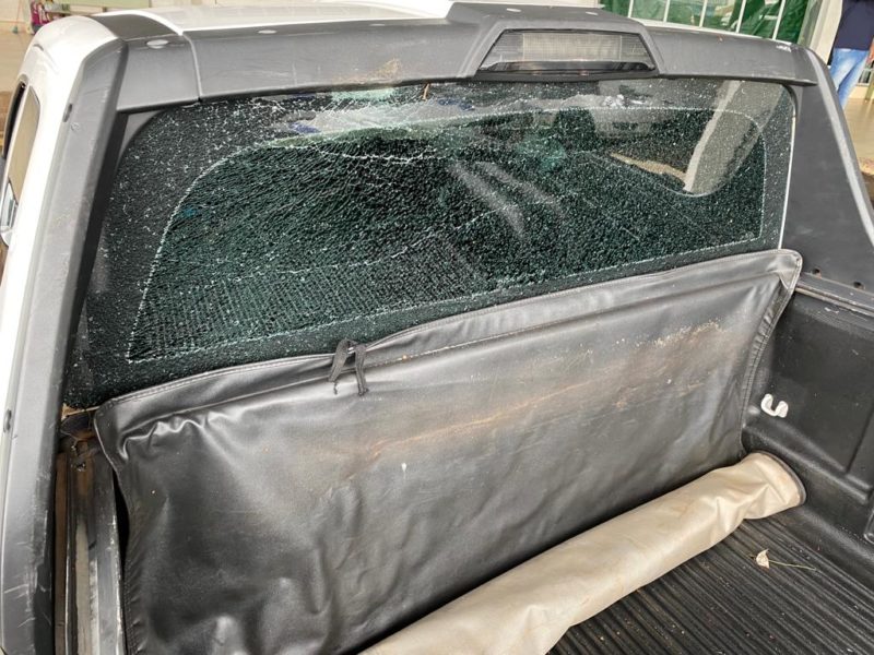 Quando chegou ao estacionamento, o homem viu o motorista dentro do veículo e desferiu um golpe com um pedaço de maneira contra a traseira da Montana. Foto: J. Filippin/ Rádio Cultura de Xaxim/Reprodução/ND - 5 de 8