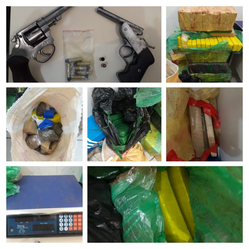 Mais de 230 quilos de maconha, além de duas armas e balança de precisão foram apreendidos pela PM durante operação