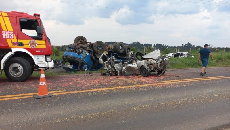 Um engavetamento envolvendo um caminhão e três veículos, nesta terça-feira (28), deixou três pessoas feridas na BR-280 em Canoinhas, no Planalto Norte de Santa Catarina.