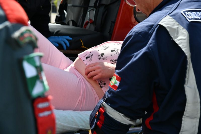 A mulher, com 38 semanas de gestação, apresentava hipertensão, pré-eclâmpsia e estava em trabalho de parto. – Foto: CBMSC/Reprodução/ND - 4 de 4