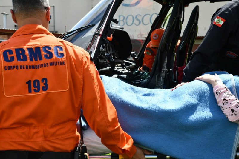 Ela foi transportada de helicóptero do município de Rio do Campo para Rio do Sul. – Foto: CBMSC/Reprodução/ND