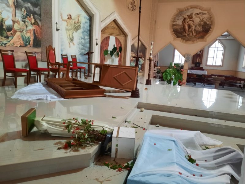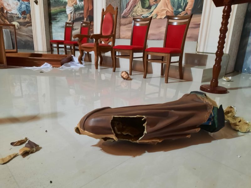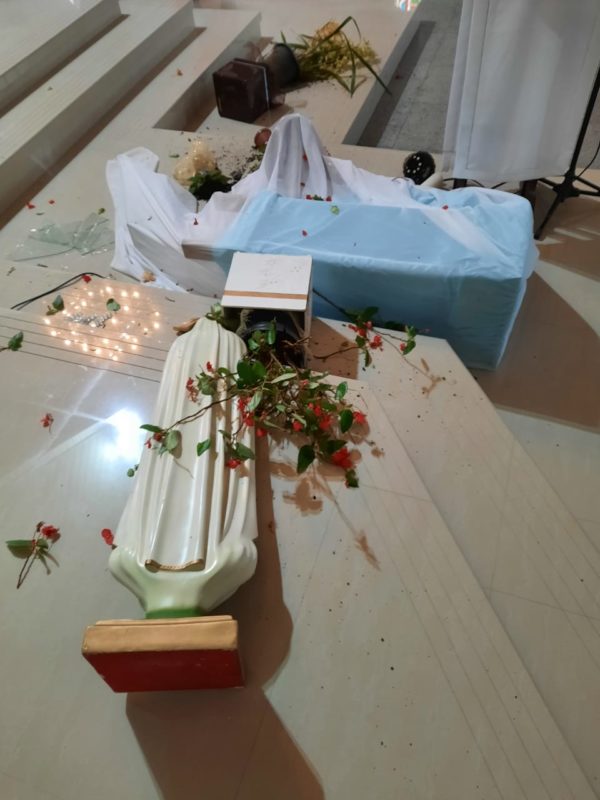 Imagens destruídas na Igreja Matriz, em Treze de Maio – Foto: Divulgação/ND