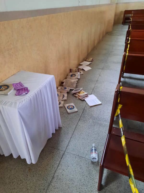 Além das imagens, livros foram rasgados e flores estragadas – Foto: Divulgação/ND