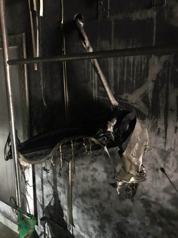 A funcionária informou aos bombeiros que percebeu o incêndio quando ele já estava em grandes proporções. Desta forma, não conseguiu utilizar o extintor que havia no local para controlar as chamas – Foto: Corpo de Bombeiros/Divulgação - 3 de 8