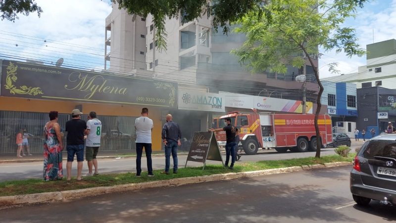 O incêndio registrado em uma loja de roupas no Centro de Chapecó, nesta quarta-feira (13), deixou a sala comercial danificada. – Foto: Corpo de Bombeiros/Divulgação - 2 de 8