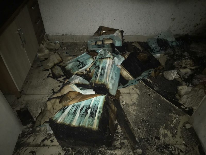 De acordo com a colaboradora, no local onde o fogo iniciou havia arquivos e um colchão, mas não possuía nenhum equipamento elétrico. – Foto: Corpo de Bombeiros/Divulgação - 4 de 8