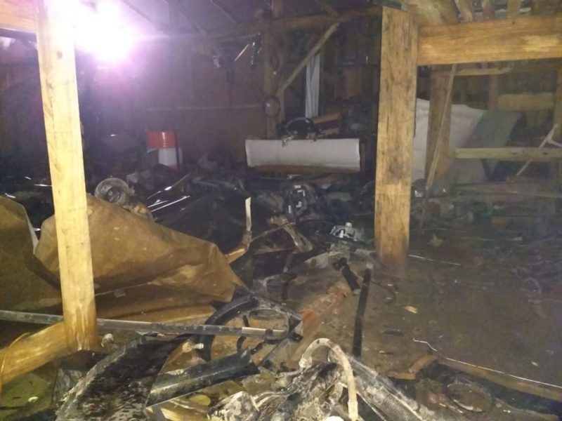 Dentro do imóvel, havia vários equipamentos de automóveis, dos quais cerca de 30% ficaram destruídos. Já do lado de fora, quatro carros foram totalmente destruídos pelas chamas. No total, 2.500 litros de água foram usados no combate ao fogo.