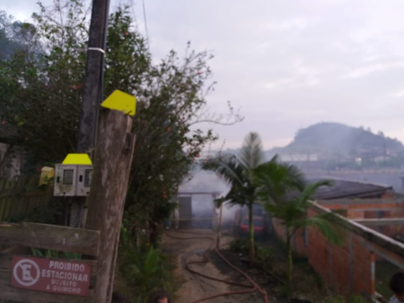 Um incêndio destruiu uma casa por completo em Barra Velha, no Litoral Norte de Santa Catarina, na madrugada deste sábado (25). As seis pessoas que moravam na residência de 80m² não se feriram.