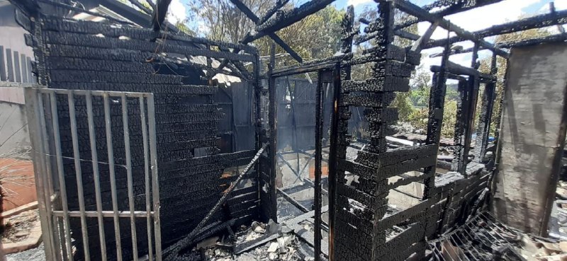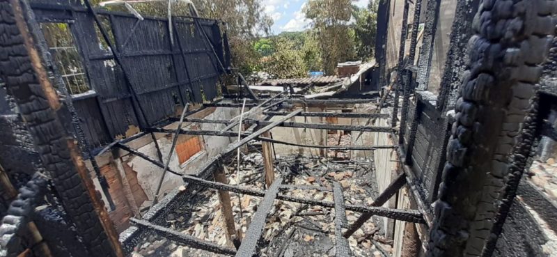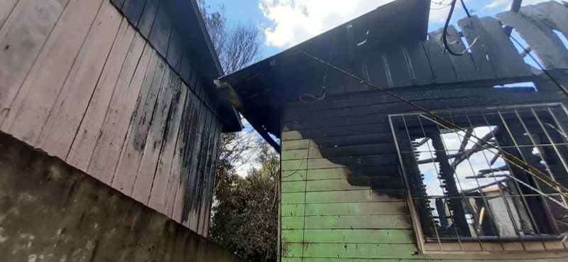 Uma casa mista com cerca de 110 m² foi totalmente destruída em um incêndio no início da tarde desta segunda-feira (6) em Chapecó, no Oeste de Santa Catarina. – Foto: Corpo de Bombeiros/Divulgação/ND - 2 de 4