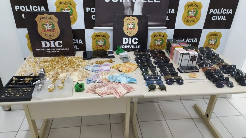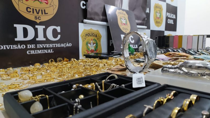 Joias, relógios, óculos, entre outros itens, foram recuperados durante uma operação da Polícia Civil na tarde desta sexta-feira (12), em Joinville – Foto: Ricardo Moreira/NDTV Joinville - 2 de 8