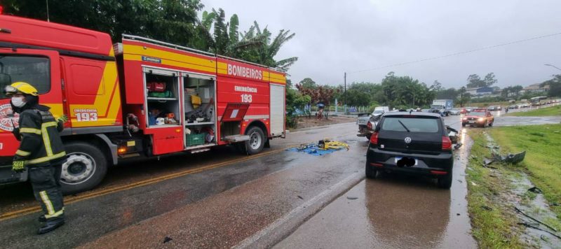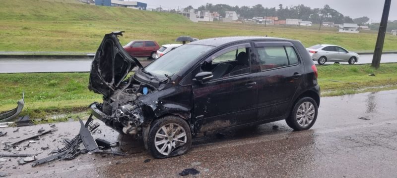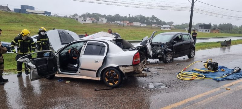 Acidente de trânsito na SC-401 entre dois carros fez com uma vítima ficasse gravemente ferida em Araquari, no Norte catarinense. No fim da tarde, por volta de 17h30, um dos veículos invadiu a pista contrária e acabou batendo de frente com outro carro.