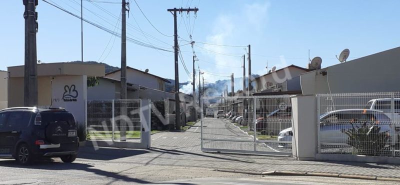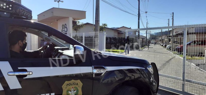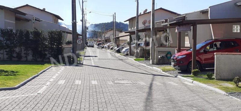 O crime ocorreu no final da manhã deste sábado (12) no condomínio fechado Brisa do Valle, que fica na rua Lauro Zimermann, bairro Escolinha, em Guaramirim. – Foto: Gladionor Ramos/ND