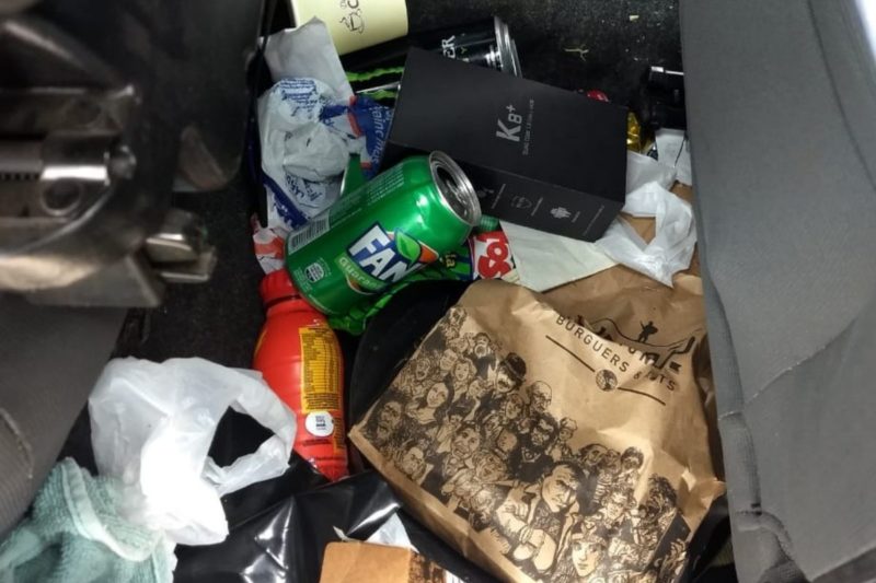 O bebê no carro era filho dele e estava sendo transportado em meio ao lixo espalhado pelo carro. A polícia ainda encontrou 27 gramas de maconha e skunk no porta-luvas.