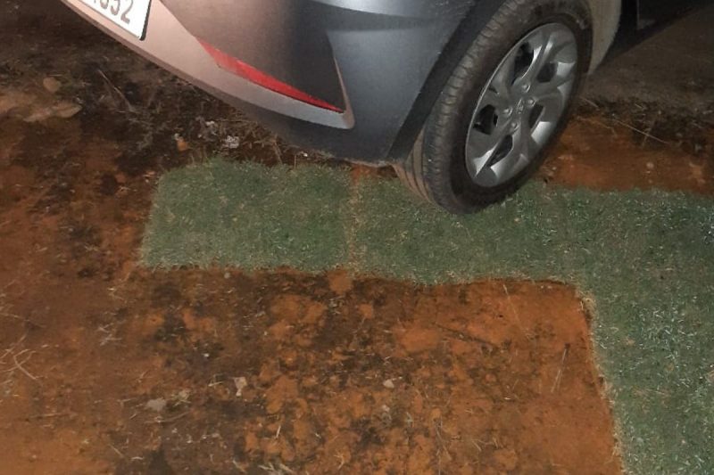 Segundo a PMRv (Polícia Militar Rodoviária), uma guarnição em ronda pela rodovia flagrou a situação na noite de quinta-feira (22), por volta das 21h. O carro do homem estava parado no estacionamento, enquanto ele retirava as placas de grama do terreno.
