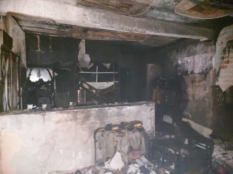 A equipe coletou informações sobre o incêndio, mas ainda não há informações sobre o que causou o fogo. Parte da casa ficou destruída.