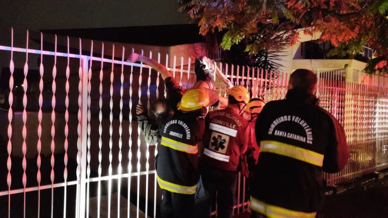 Os Bombeiros Voluntários de Joinville foram acionados por volta da 1 hora, após um morador do entorno chamar o socorro depois de ouvir os gritos do homem preso.