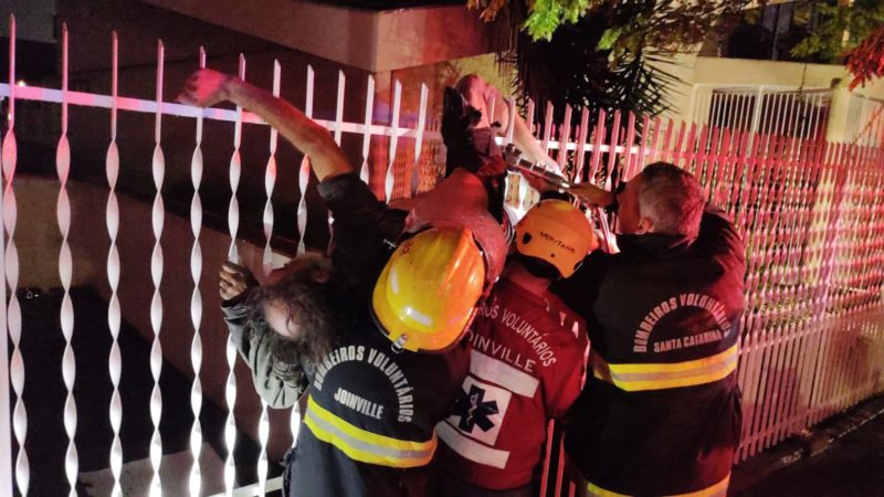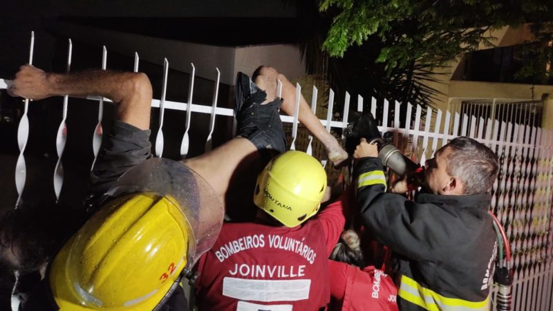 Um homem de 50 anos precisou ser resgatado pelos bombeiros após ficar preso nas grades que cercam uma igreja do bairro Santo Antônio, em Joinville, no Norte de Santa Catarina, na madrugada desta terça-feira (9).