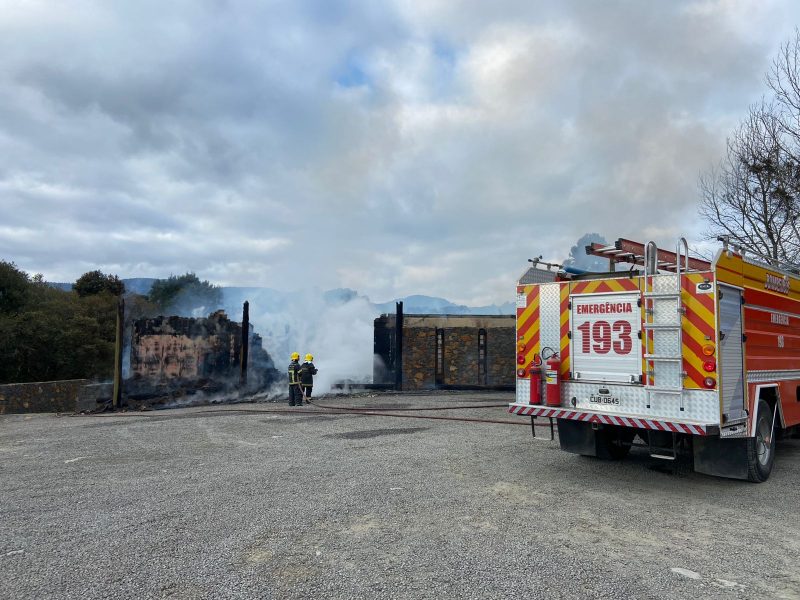 O Corpo de Bombeiros Militar foi acionado às 6h45 para atender a ocorrência no estabelecimento, que fica no km 355 da SC-110, na localidade de Caneleira.