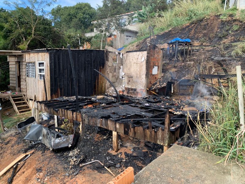 Segundo os bombeiros, a casa tinha cerca de 60 metros quadrados e foi totalmente destruída pelas chamas. Ninguém ficou ferido. O incêndio começou por volta das 15h30 e mobilizou cinco viaturas. – Foto: Corpo de Bombeiros Militar/ND - 3 de 4
