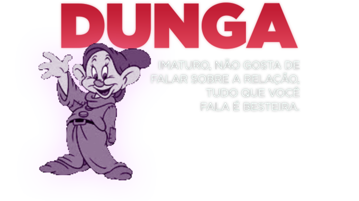 Uma cartilha produzida no Distrito Federal como material educativo contra a violência doméstica apresenta uma analogia entre os anões que cercam a Branca de Neve no conto de fadas da Disney e as características que podem evidenciar um autor de violência. Segundo a descrição, o homem “Dunga” é aquele parceiro imaturo que não gosta de falar sobre a relação e invalida os sentimentos da companheira.