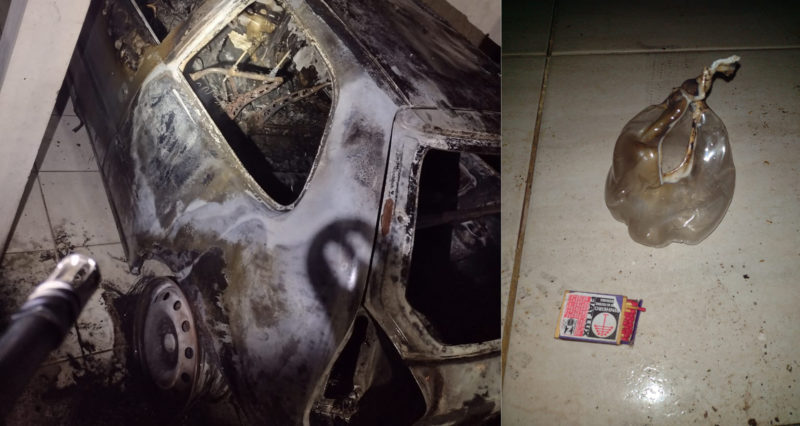 O proprietário da residência e do veículo, J M C M (ele preferiu ser identificado apenas pelas iniciais do nome), informou que estava dormindo em seu quarto e acordou com o seu veículo, um Fiat Pálio Fire, pegando fogo, ficando praticamente destruído.