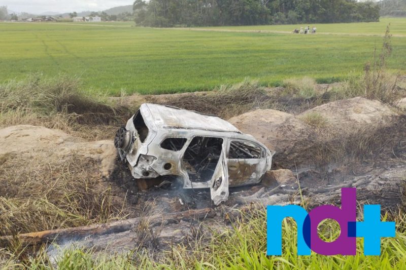 Os dois veículos ficaram totalmente destruídos no acidente. Um deles chegou a pegar fogo e foi consumido pelas chamas.