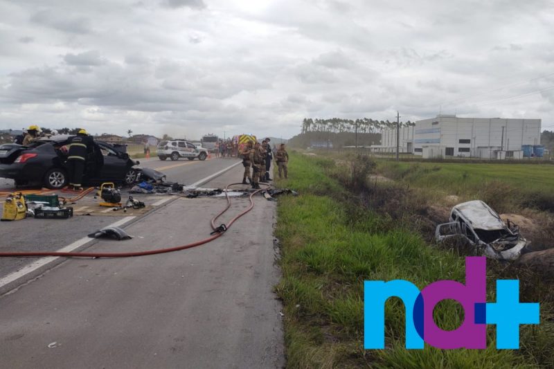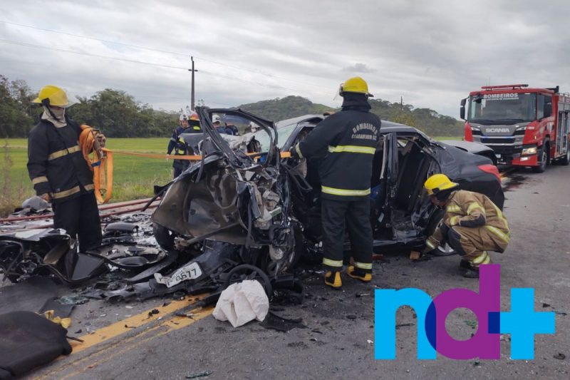 Um acidente gravíssimo deixou três pessoas mortas, entre elas uma criança, na BR-280, em Guaramirim, no Norte do estado. A batida entre os dois veículos ocorreu por volta da 13h deste domingo (20) no quilômetro 43 da rodovia.