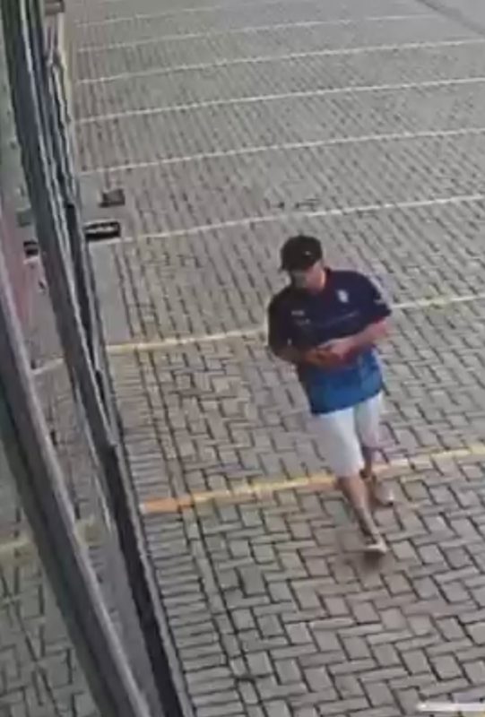 Nos vídeos, o suspeito de boné aparece com fita de proteção nos dedos da mão esquerda.