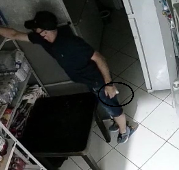 O corte na mão seria resultado de uma tentativa de roubo a uma conveniência na cidade, no sábado (12), onde o bandido teria machucado a mão ao tentar arrombar a porta da loja.