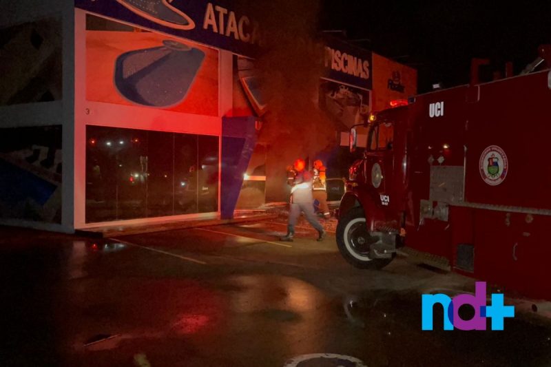 Uma loja de piscinas de Araquari, no Norte de Santa Catarina, foi atingida por um incêndio durante a noite de segunda-feira (13). As chamas foram vistas por vizinhos que acionaram os bombeiros por volta das 19h30.